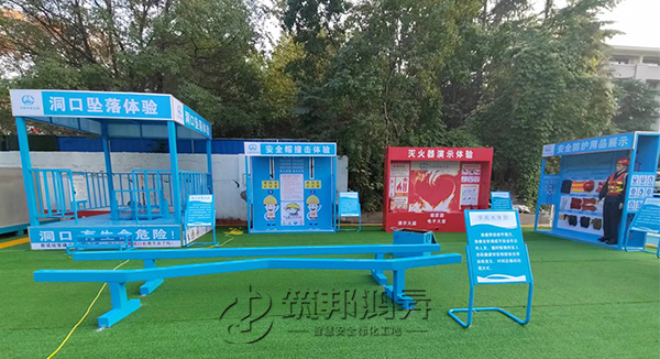 此次合作的安全教育培訓體驗區建設包括了洞口墜落體驗、鋼絲繩使用體驗、安全防護用品展示體驗、平衡木體驗、滅火器演示體驗、安全帽撞擊體驗等。筑邦安排專車送貨到安徽工地,同時安排了專業人手迅速到工地加班加點完成安裝。